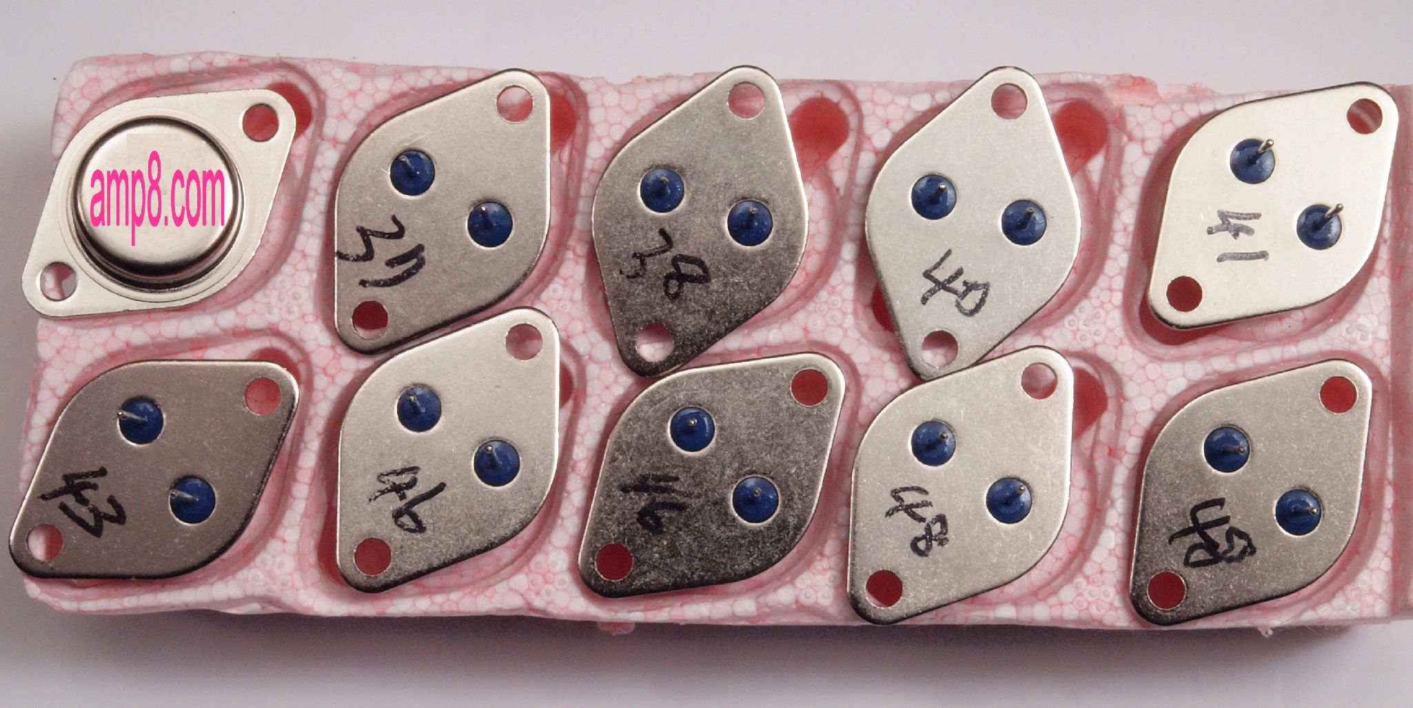 | C11. 修理前 R側終段TR(トランジスター)。 2SD425/2SB555の3パラレル接続。左右で異なる! | ||||||||||||||||||||||||||||||||||||