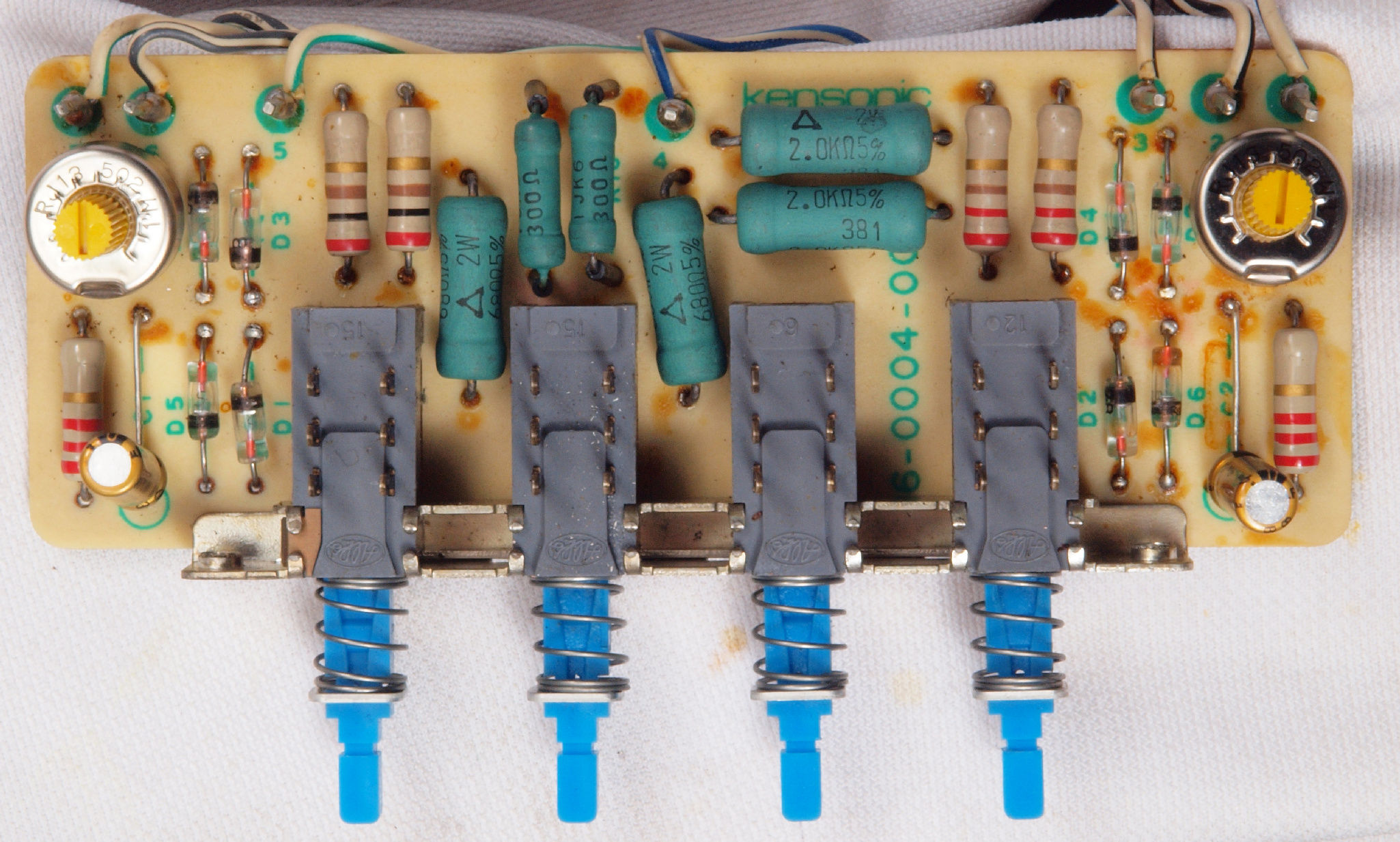 | C92. 修理後 VUメータレベル切換SW基板。 半固定VR2個、電解コンデンサー2個交換。 | ||||||||||||||||||||||||||||||||||||