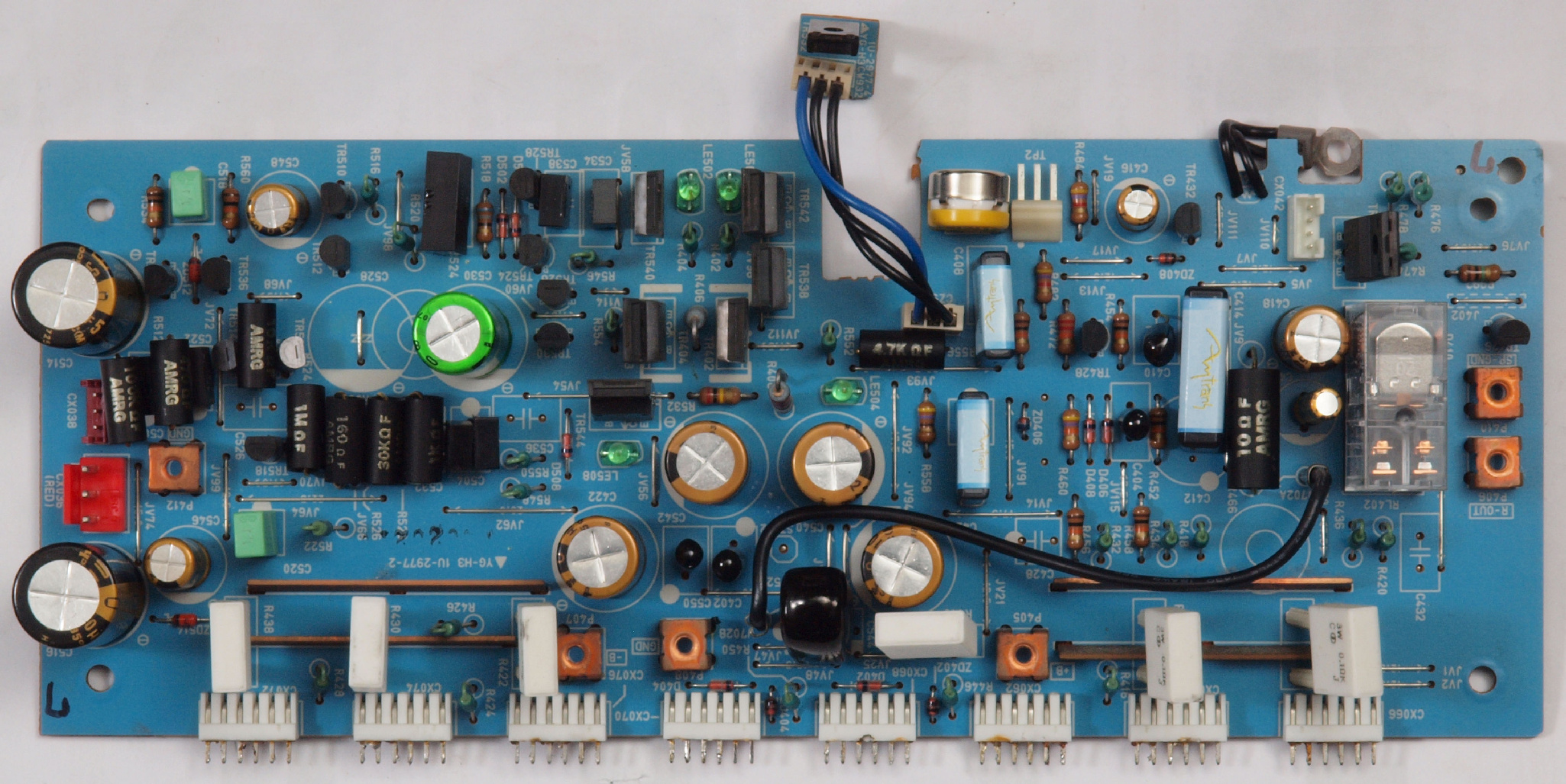 C22. 修理後 左側終段AMP基板。 バイアス調整用半固定VR1個、SP接続リレー1個