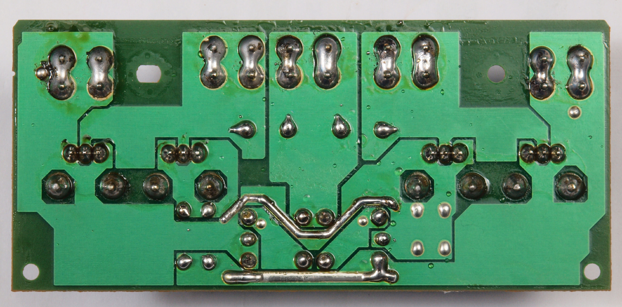 CB9. 修理(半田補正)後 ヒューズ基板裏。 半田を全部やり直す。