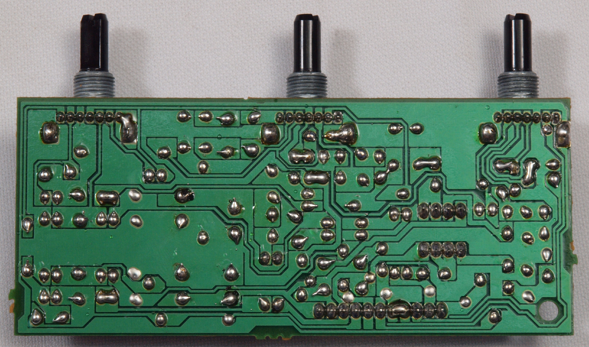 C14. 修理(半田補正)後 右側終段AMP基板裏。 半田を全部やり直す。