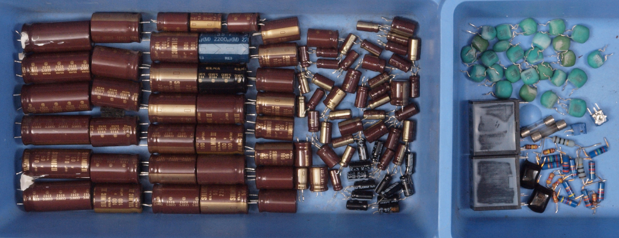 抵抗11個、電解コンデンサー13個、フイルムコンデンサー10個交換、フイルムコンデンサー2個追加