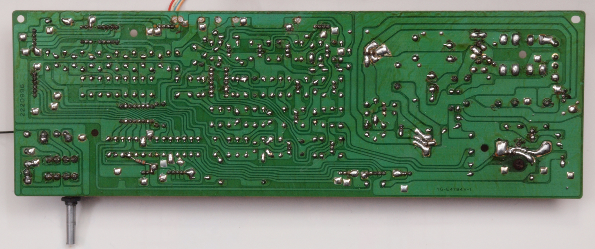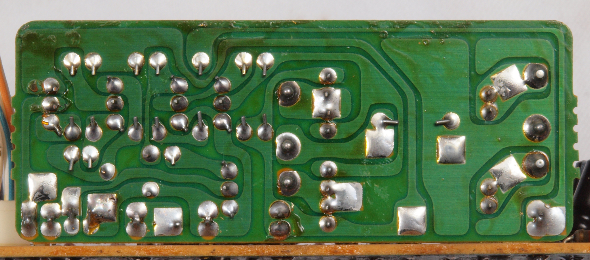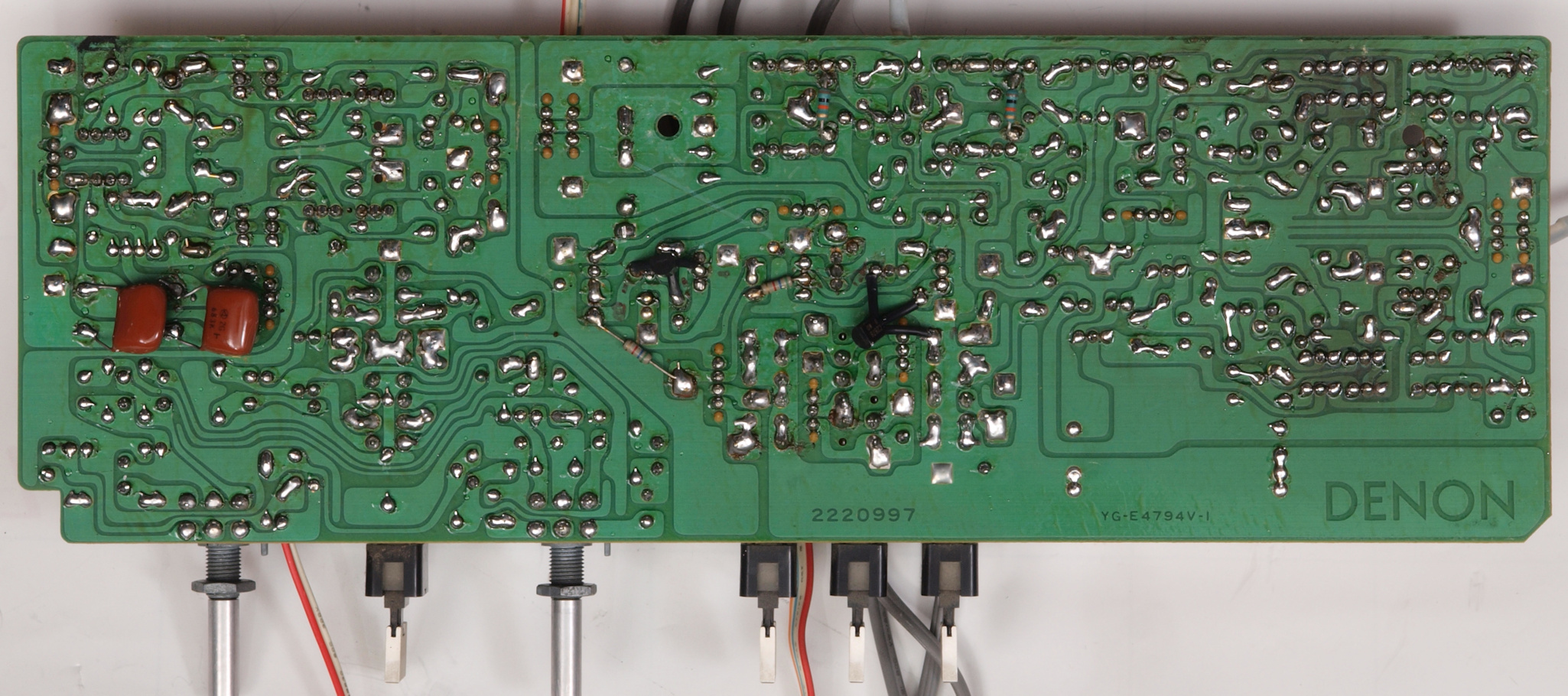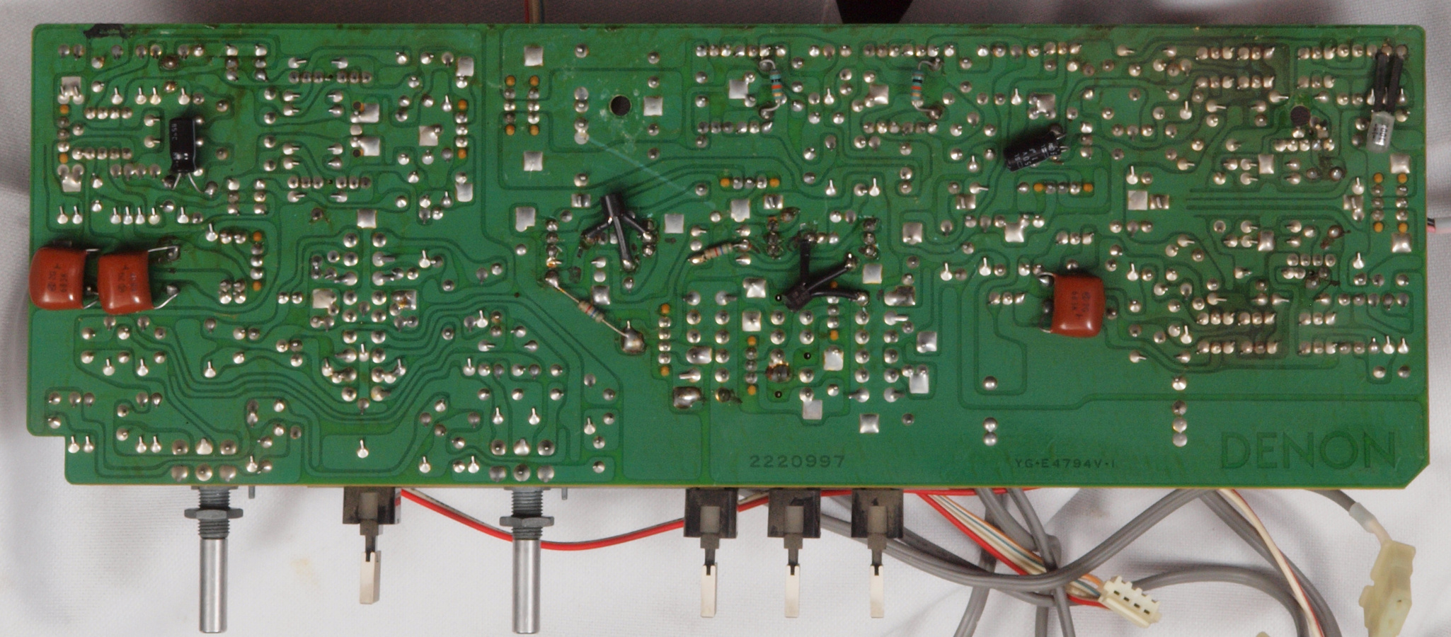 | C212. 修理中 EQ−AMP基板。 トルエン溶媒の接着剤。錫メッキジャンパー線が腐食している。 | ||||||||||||||||||||||||||||||||||||||||||||||||||||