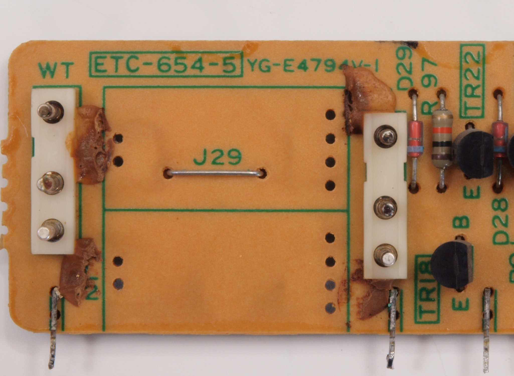 | C412. 修理中 電源・コントロール、リレー基板、トルエン溶媒の接着剤。錫メッキ端子を腐食す。 | ||||||||||||||||||||||||||||||||||||||||||||||||||||
