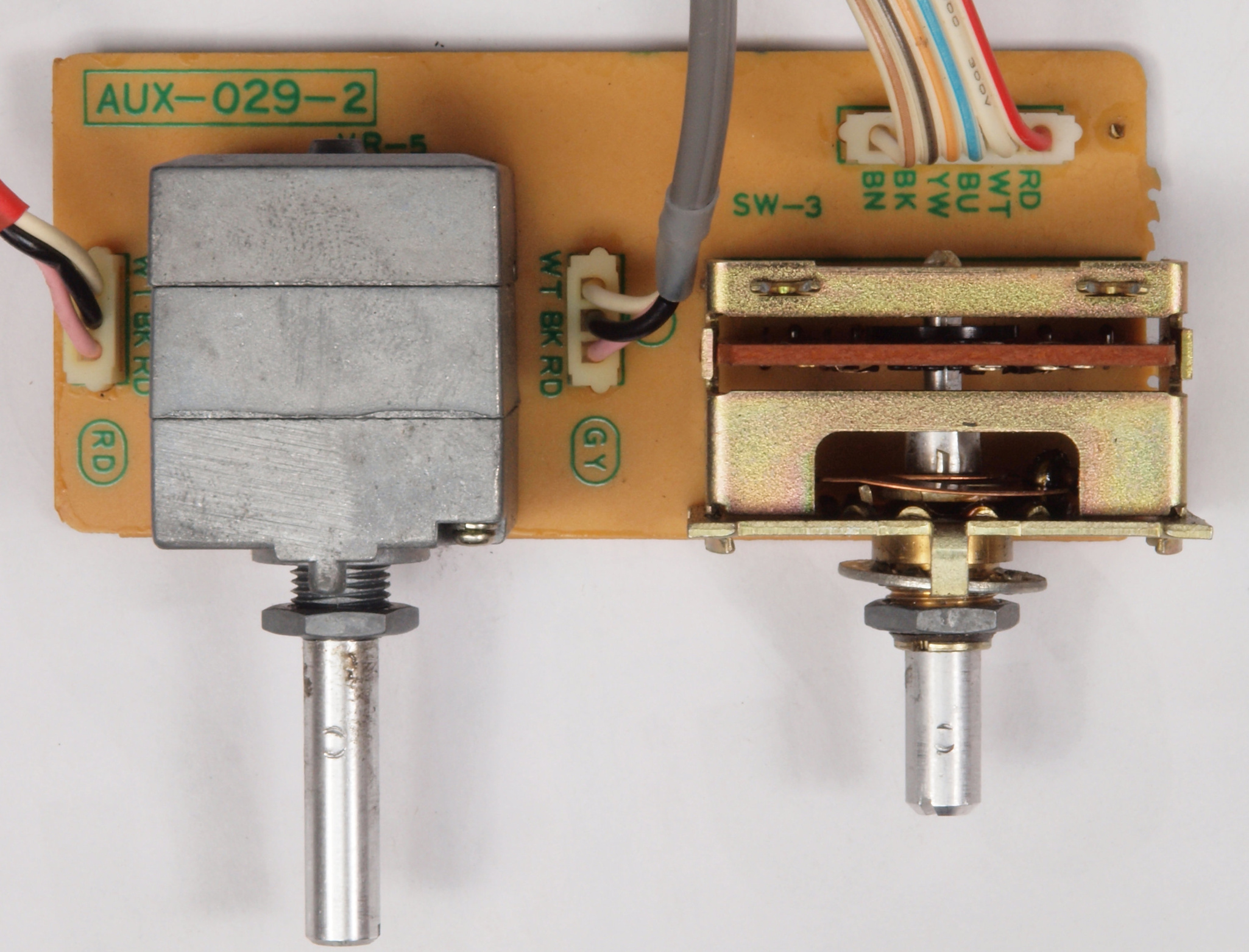 C11. 修理前 EQ−HEAD-AMP基板。 左=MM、中=MC、右=トランス使用MC。 上右端がMC−トランス。