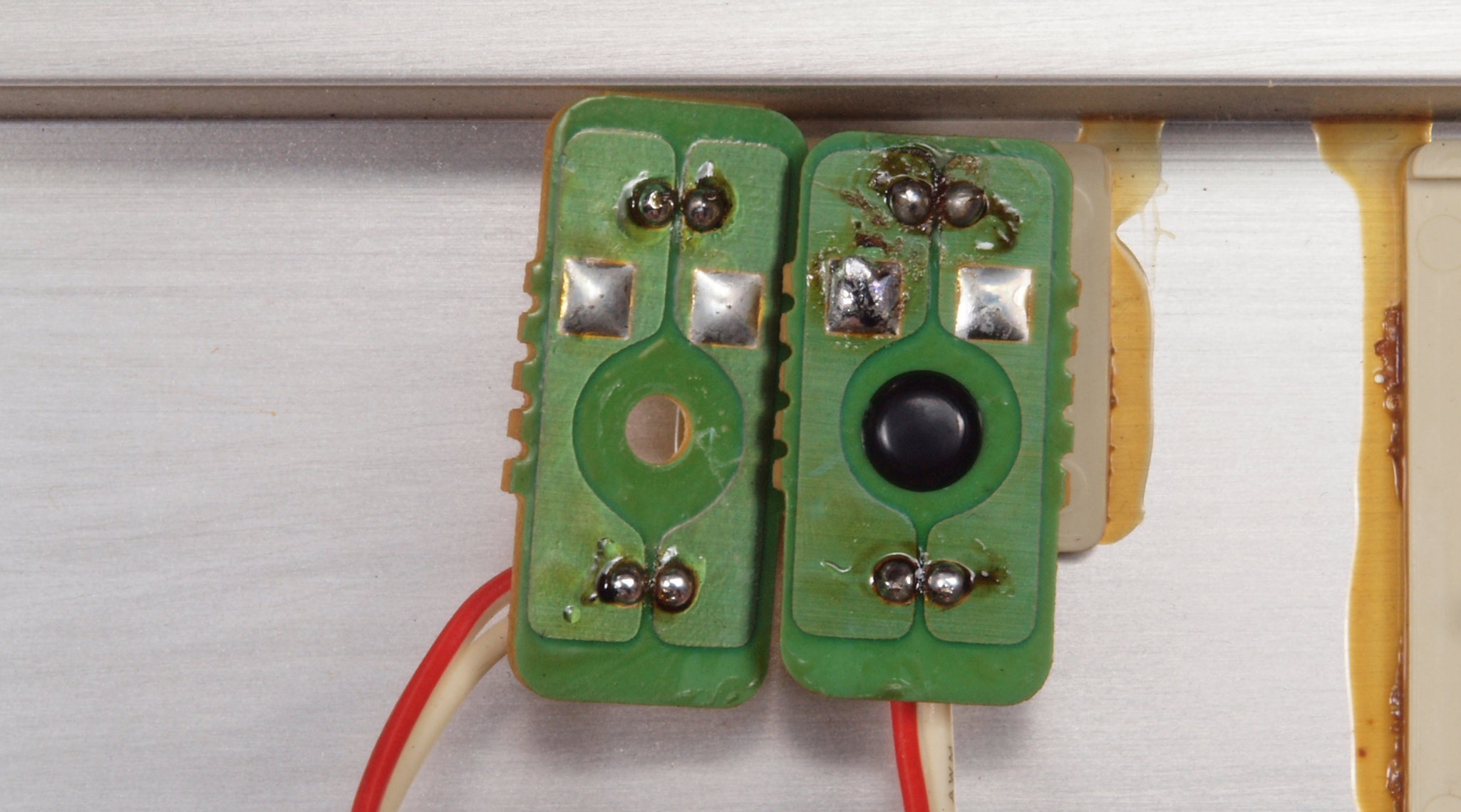 C412. 修理中 電源・コントロール、リレー基板、トルエン溶媒の接着剤。錫メッキ端子を腐食す。