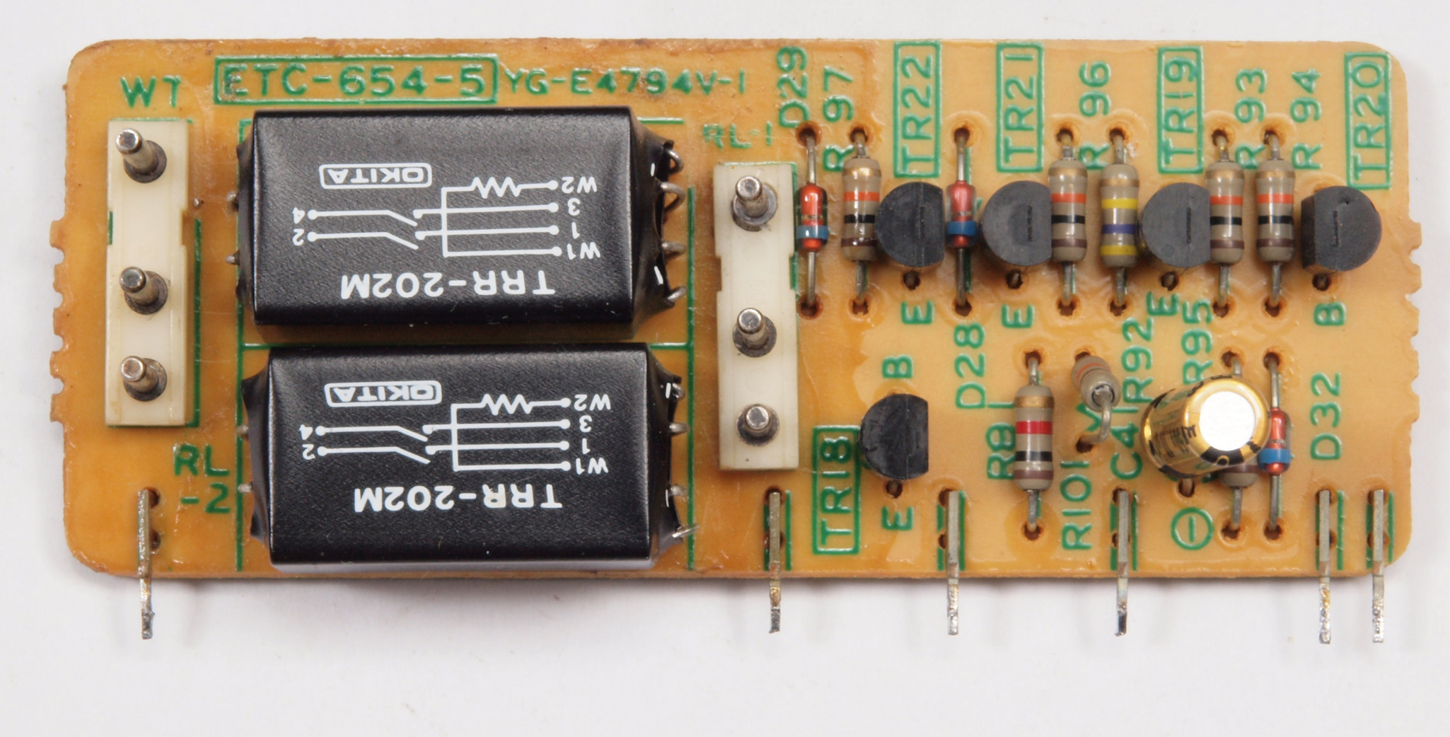 C42. 修理後 電源・コントロール、リレー基板。 電解コンデンサー1個、リードリレー2個交換。