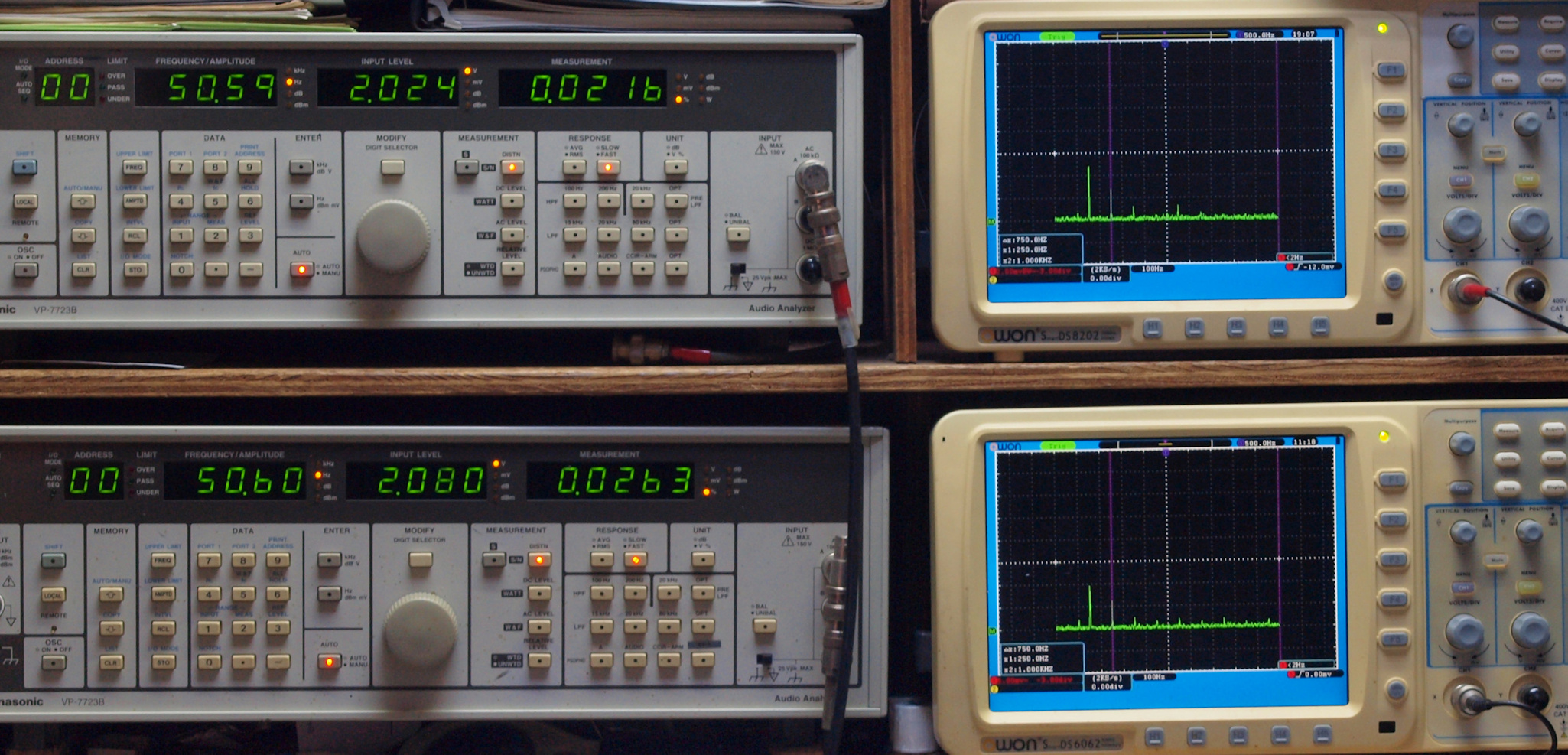 E51. MC−Tr_50Hz入力、 R側出力電圧=2V、 0.0216%歪み。