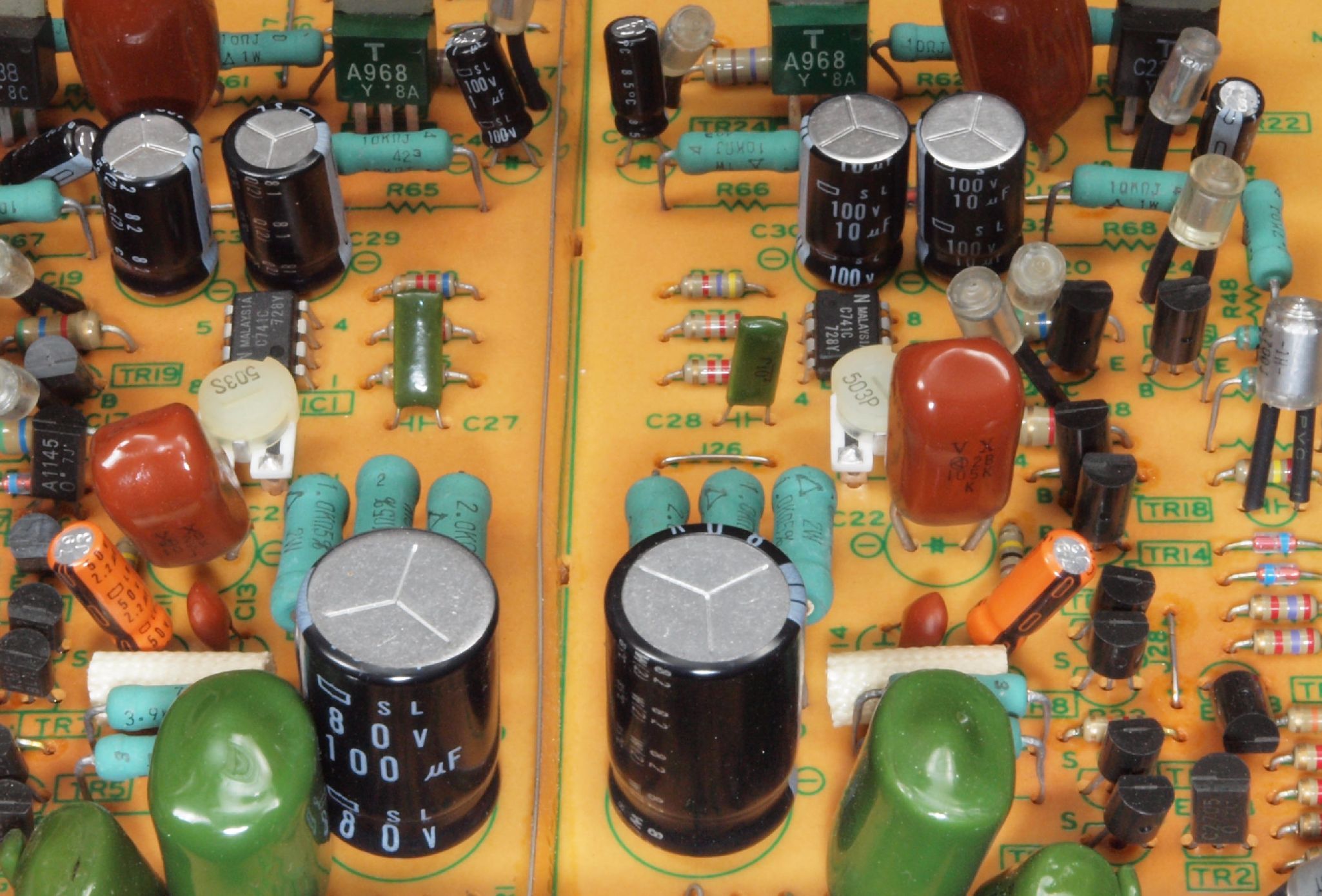 C22. 修理後 EQ−AMP基板 OP−AMP2個、電解コンデンサ−18個、リードリレー4個、半固定VR2個交換。