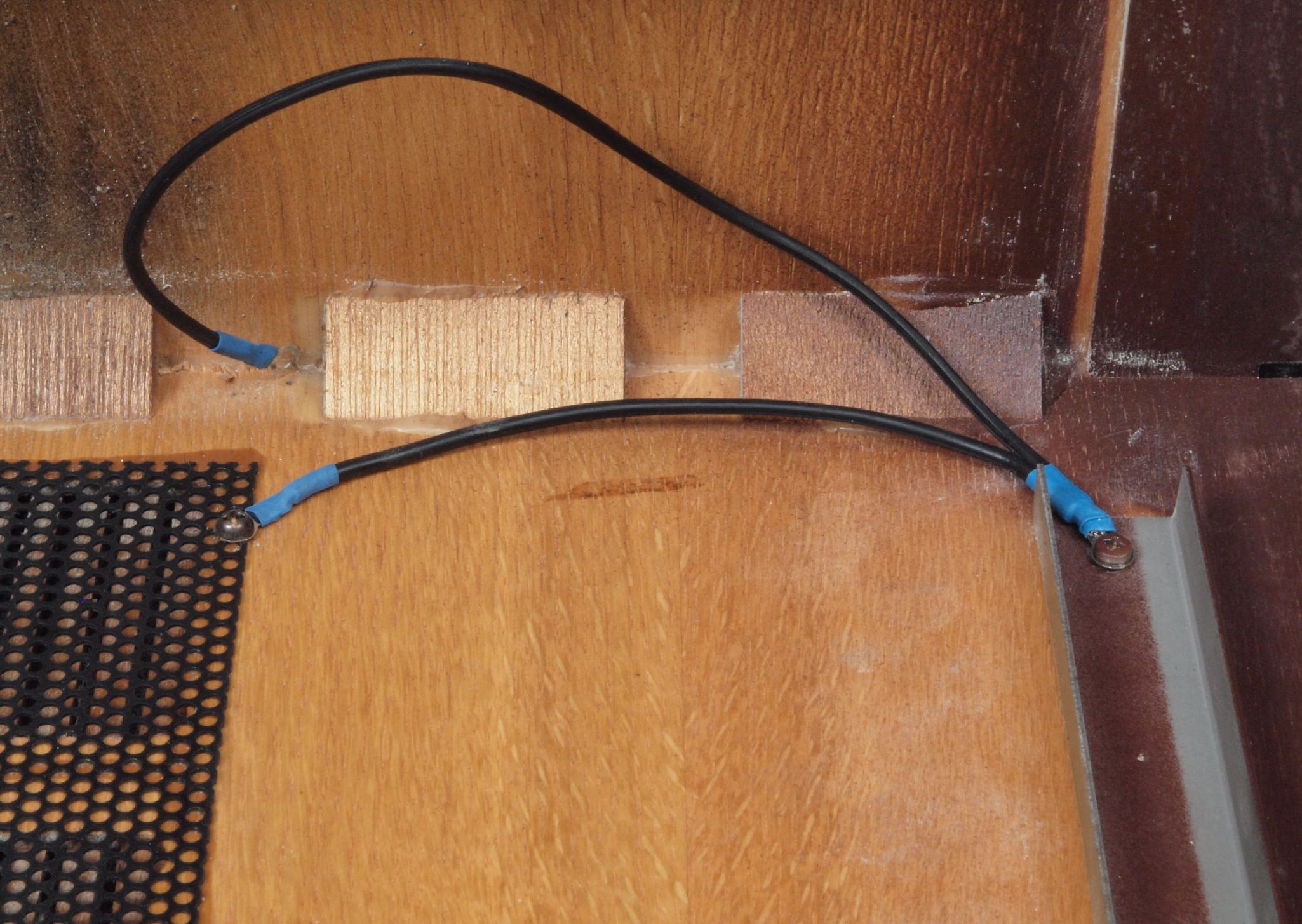 A24. 点検中 木ケースを取り、上から見る。ヘッドAMPのの電解コンデンサー頭のビニールが剥けている。
