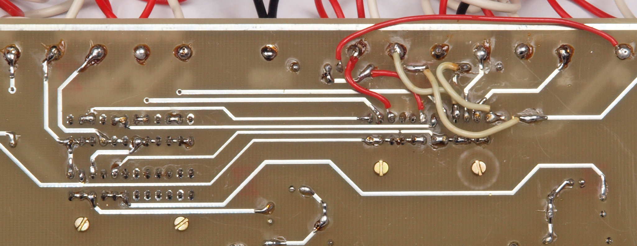 | C44. 修理(半田補正)後 出力遅延基板裏。 全ての半田をやり修す。 | ||||||||||||||||||||||||||||||||||||