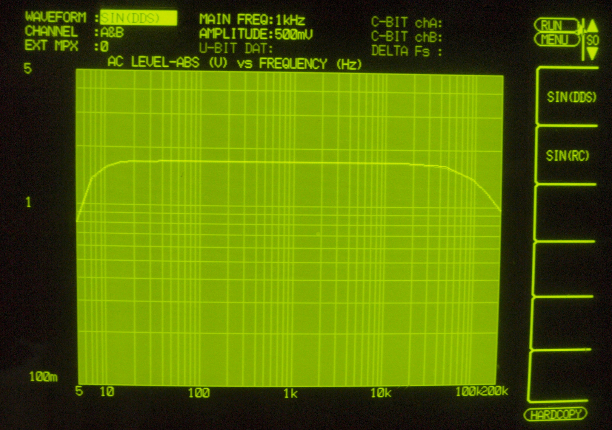 | F. 上位測定器による 調整・測定。 画像をクリックすると、大きく(横幅2050ドット)表示されます。 F0. 下のオーディオアナライザーVP−7732Aで自動測定 |