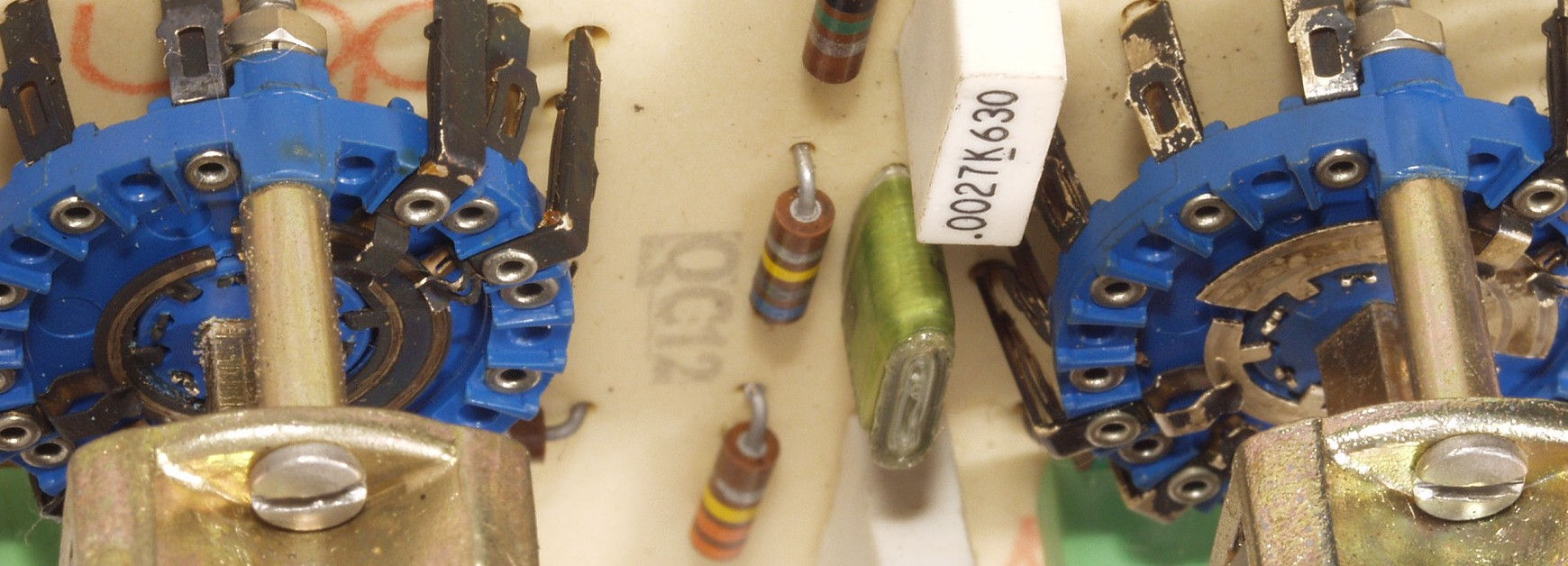 | C5A. 修理中 TREBLコントロール基盤のSW接点清掃中 左=清掃前、右=清掃後 | ||||||||||||||||||||||||||||||||||||||||||||||||||||||||||