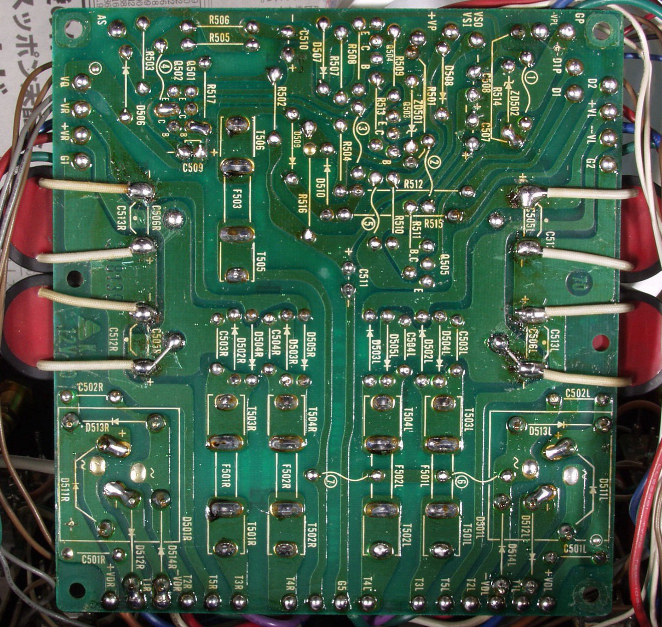 | C2D. 修理(半田補正)後 Lドライブ基板裏 半田を全部やり直す 普通はこれで完成 |