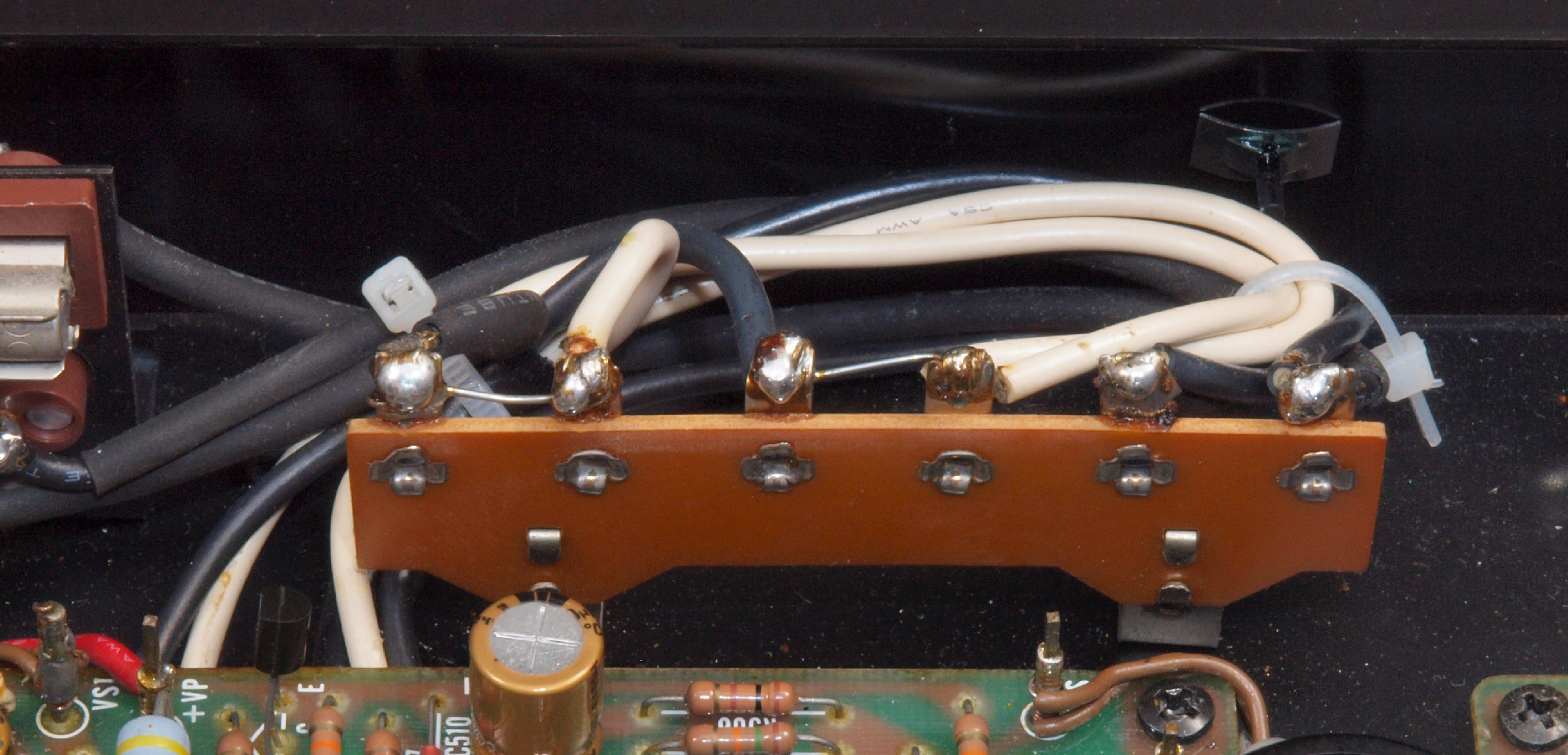 | C6C. 修理後 RCA端子基板の切り換えSW分解。使用するのは端の1回路のみ、内側の綺麗な接触子と交換して組む。 |