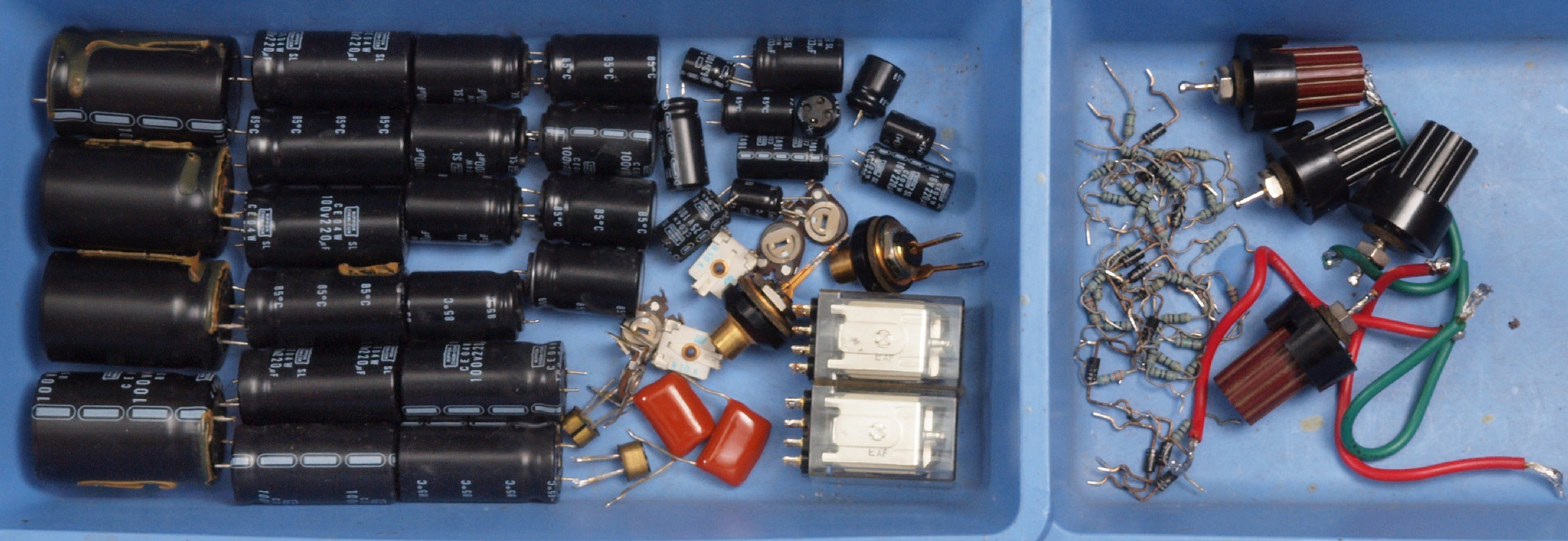 | A42. 点検中 電解コンデンサー外観比較、220μ/100V |