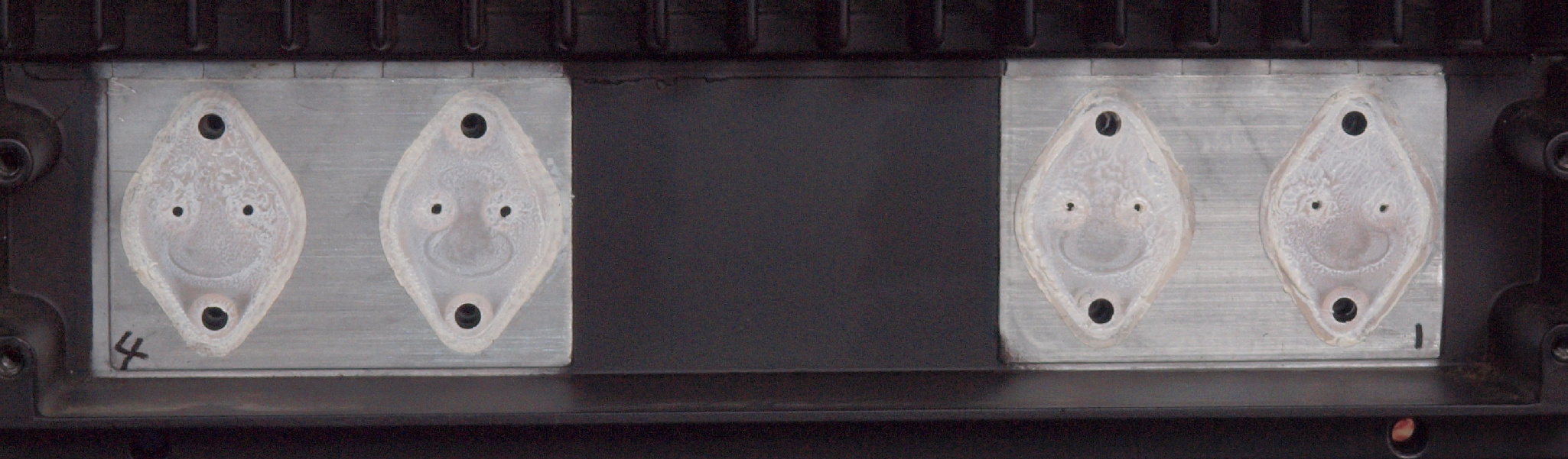 | CB1. 修理中 下蓋前右側の足部分の凹み。 |