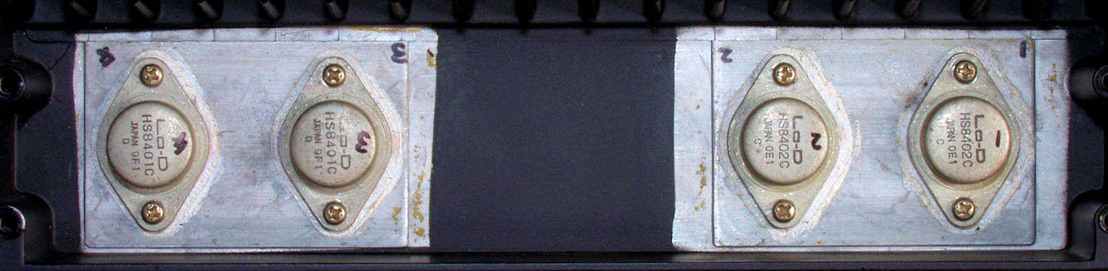 | A61. 点検中 左右終段FET(電界効果トランジスター)のバランス電流、前回修理の右側AMPが多い。 |