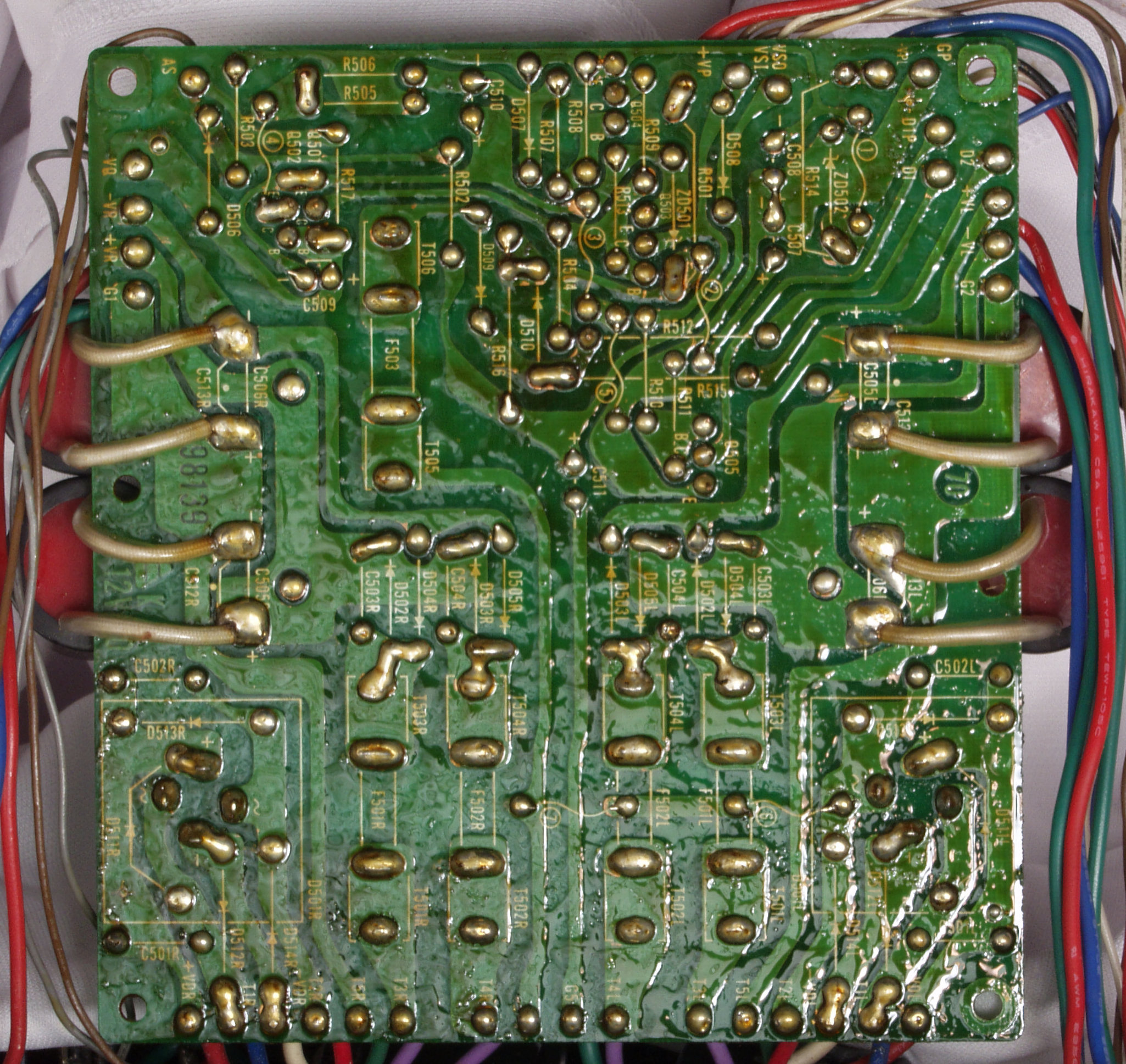 | C14. 修理(半田補正)後 R側ドライブ基板裏 半田を全部やり直す。 普通はこれで完成。 |