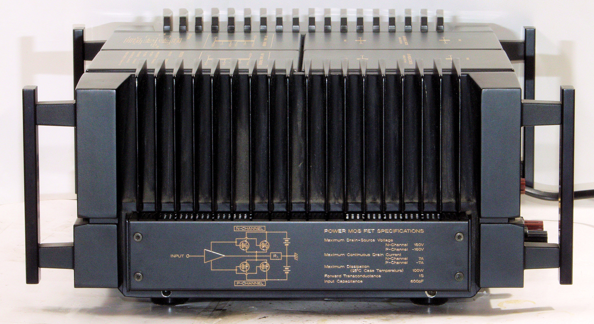 | E21. R側SP出力電圧35V=153W出力 0.005%歪み 100Hz入力。 L側SP出力電圧34V=145W出力 0.005%歪み 100Hz入力。 |