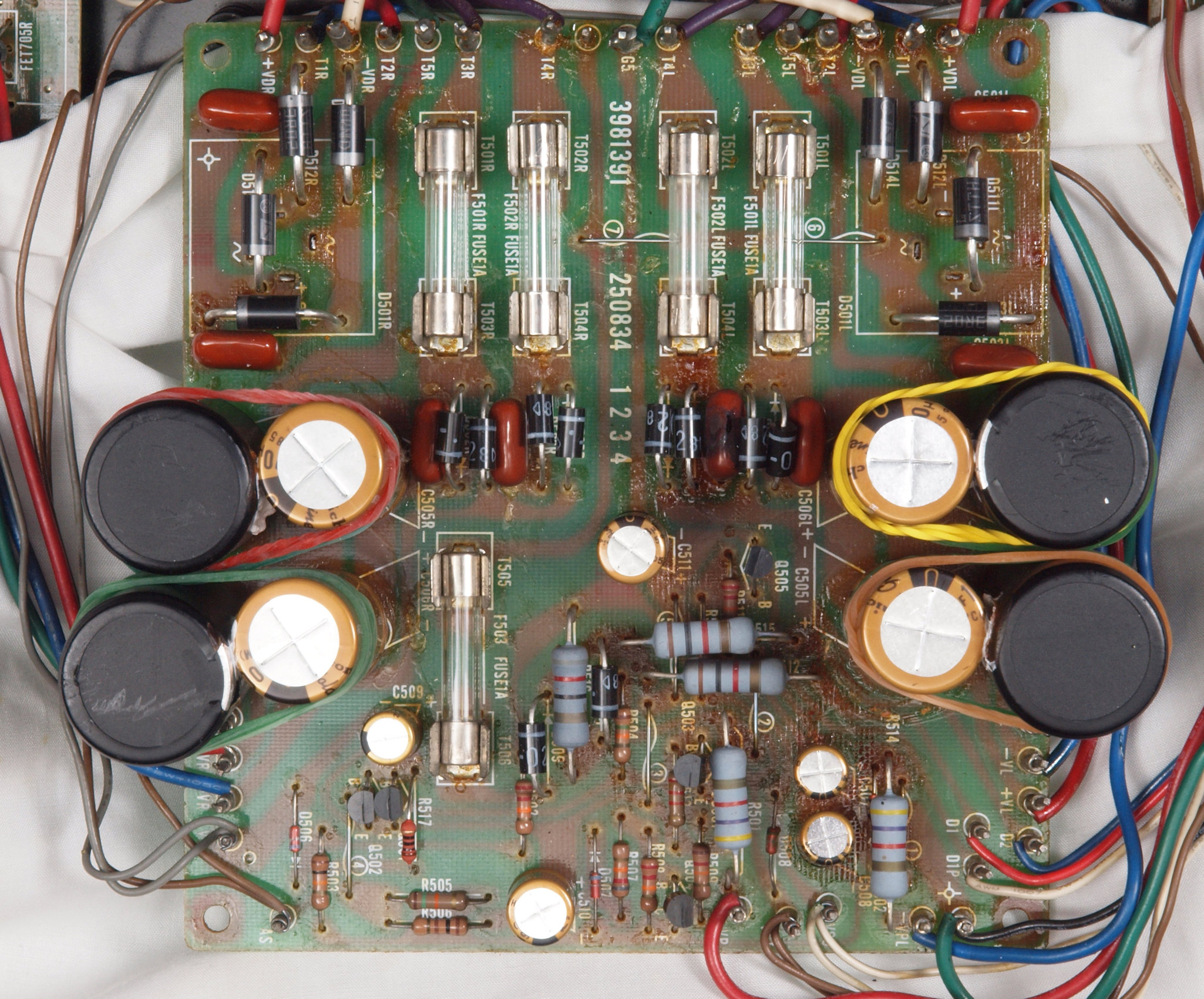 ヒューズ入り抵抗全部、電解コンデンサー11個、足黒TR(トランジスター)6個交換。