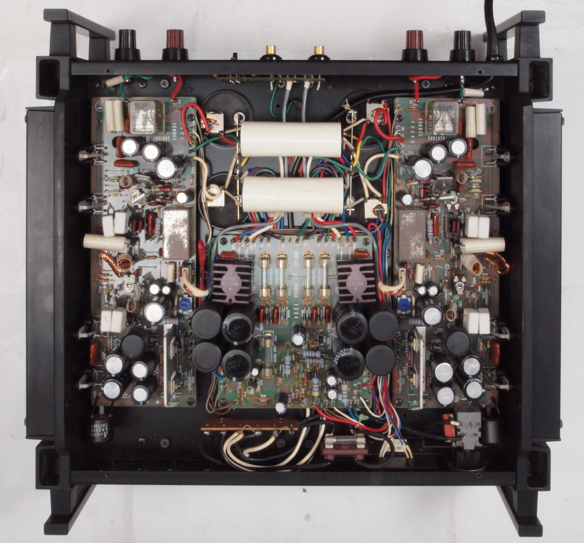 初段FET(電界効果トランジスター)、バランス・バイアス調整用半固定VR3個、SP接続リレー交換