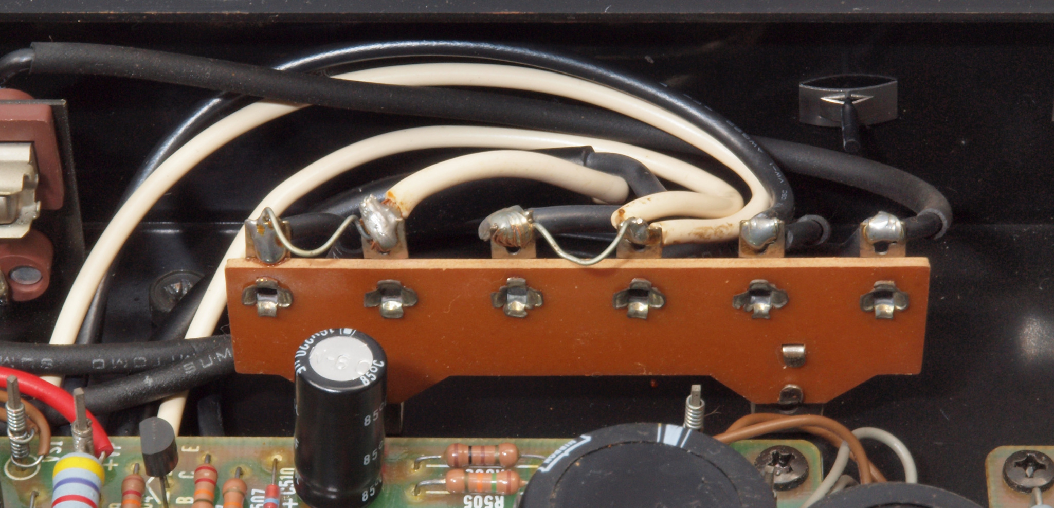 A76. 点検中 R−SP端子。 WBT−0735に交換可能です、但し既存の取り付け穴が見えます。