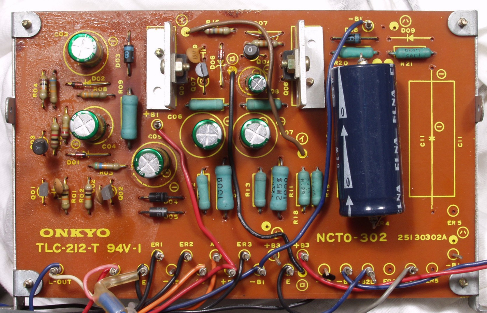 | C2B. 修理後 Lドライブ基板 TR(トランジスター)2個、バランス・バイアス調整用半固定VR2個、電解コンデンサー3個交換 | ||||||||||||||||||||||||||||||||||||||||||||||||||||||||||||||||||||||||||||||||||
