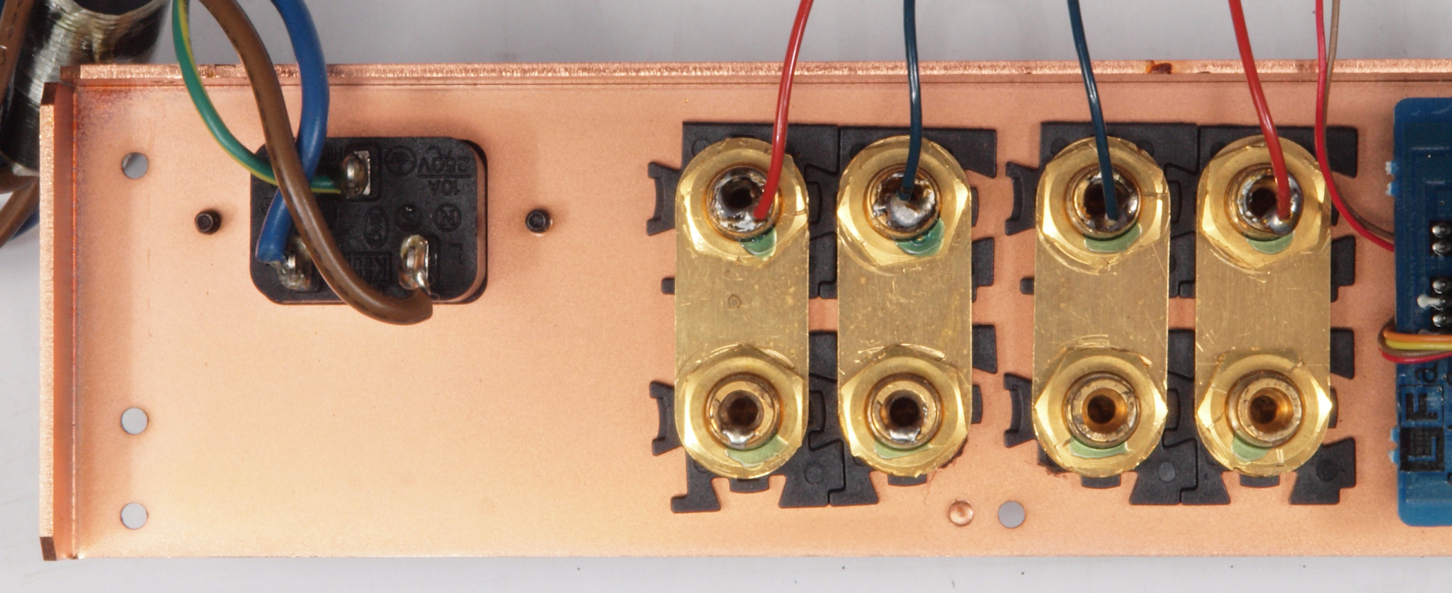 | CA2. 修理中 3Pインレット、SP出力接続端子裏。 |