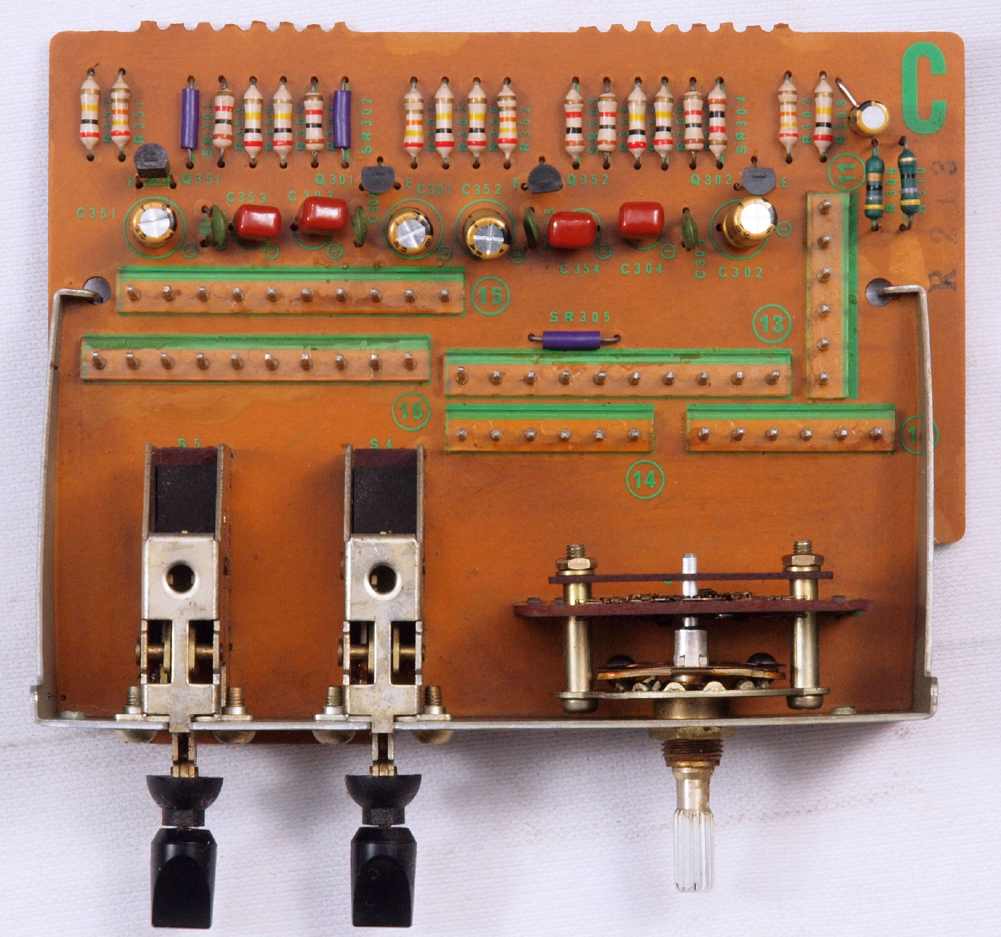 | C52. 修理後 テープモニター・ファンクションSW基板 FET(電界効果トランジスター)2個、電解コンデンサー6個交換。 | ||||||||||||||||||||||||||||||||||||||||