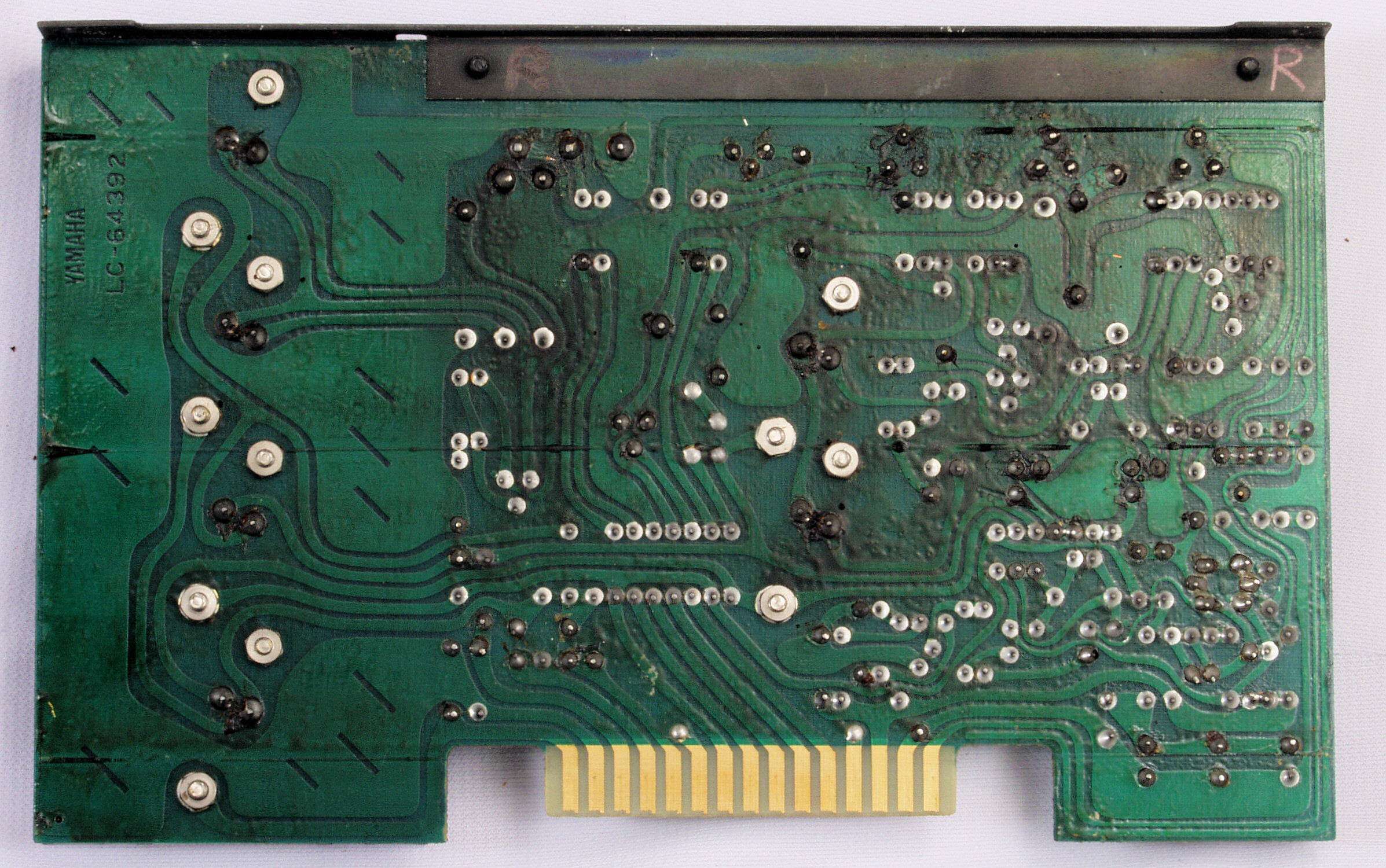 GCA. 修理前 左側ドライブ基板のカードエッジ・コネクター。