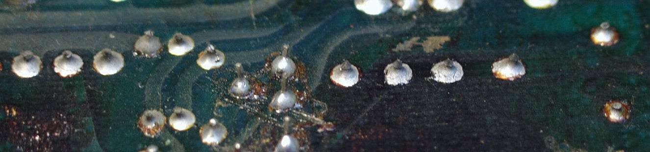 | C4C1. 修理前 電源1基盤裏 半田不良拡大部分1 熱でボロボロ | ||||||||||||||||||||||||||||||||||||||||||||||||||||