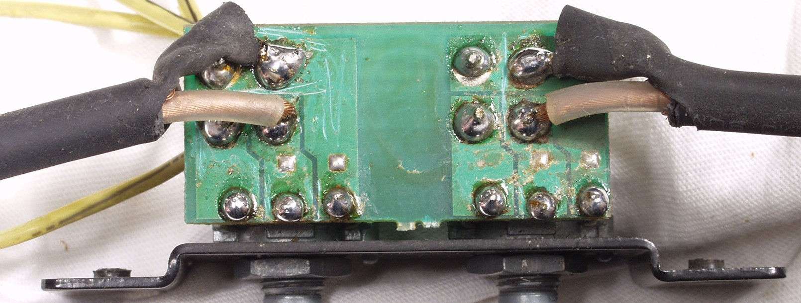 C3C2. 修理前 プロテクト基板裏、R側SP出力ライン、もう少し半田が欲しい