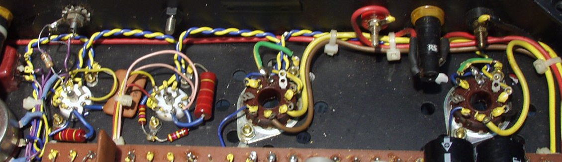 又、右側KT−88のヒ−タ−配線を増強する(左のUSソケットに入る空色/黄色の線) |