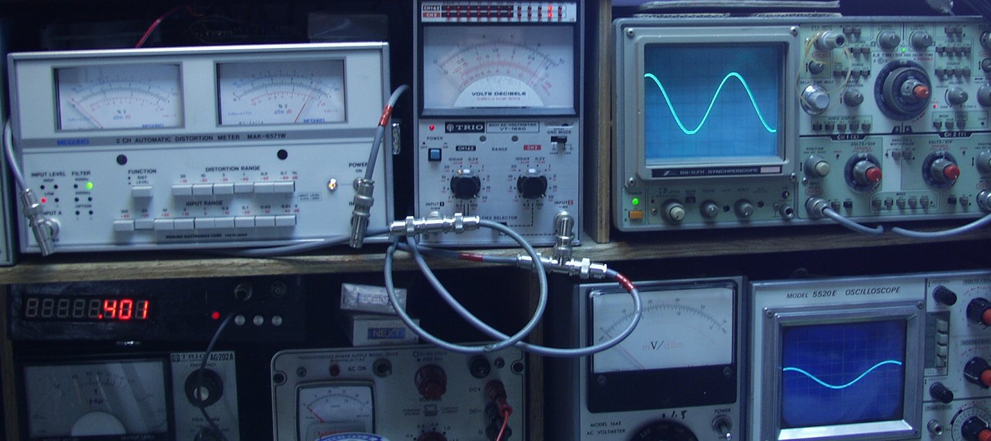 | A−4.修理前 出力・歪み測定 SP出力=20V=50W 歪み率=1% 400HZ |