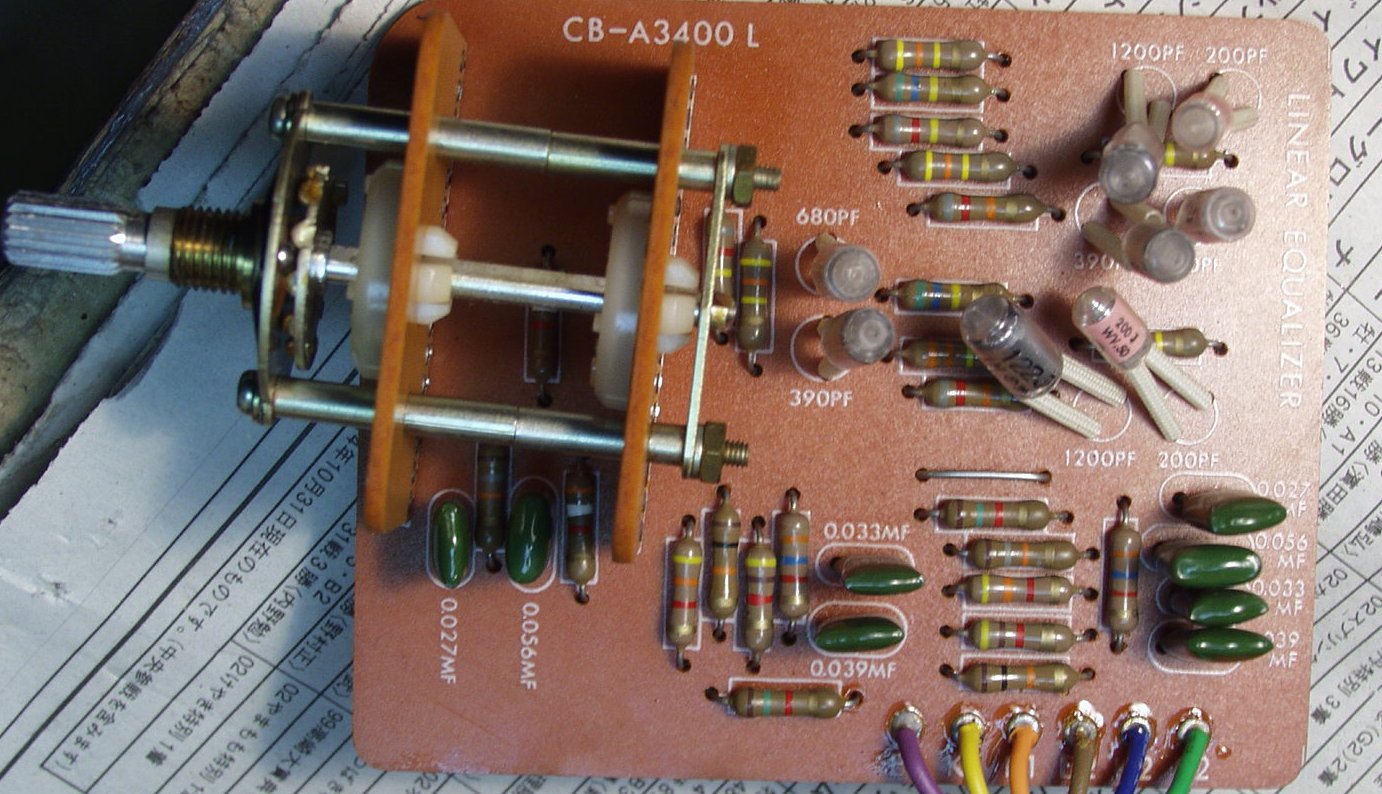 | C2. 修理後 EQ−AMP基板 フイルムコンデンサー、電解コンデンサー交換 | ||||||||||||||||||||||||||||||||||
