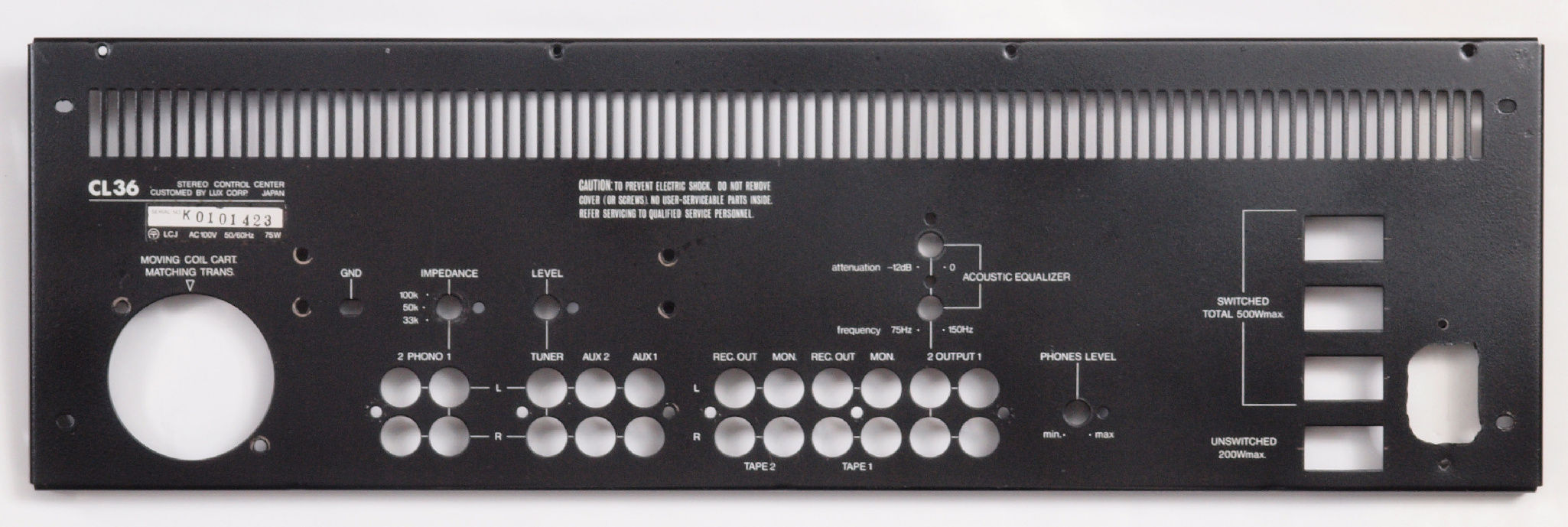 K. 上下裏パネル修理(塗装)。 L. 修理完成後の外観 S. LUXMAN CL−36 の仕様(マニアル・カタログより) |