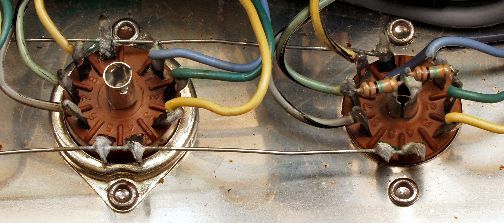C2C. 修理中 12AX7MT真空管ソケット周りの配線を外す、酸化鉛が沢山でる。