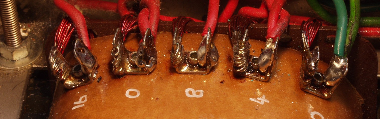 A32. 修理前の点検、 電源トランスの1次巻き線が100Vと120Vのタップ両方が接続してある。