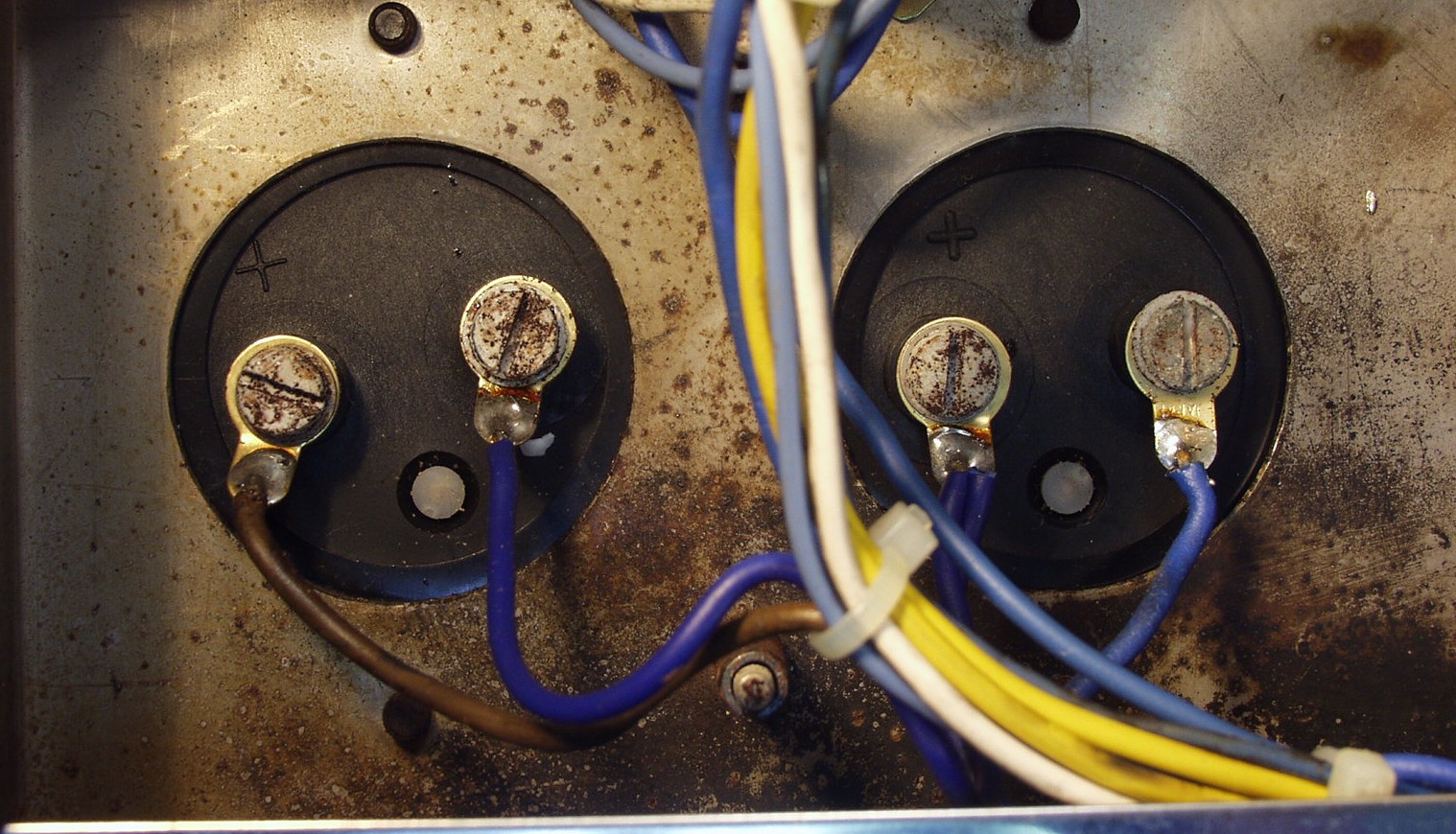 A72. 修理前の点検 白箱もセロテープが粘着力を失っている、これはかなりの年数